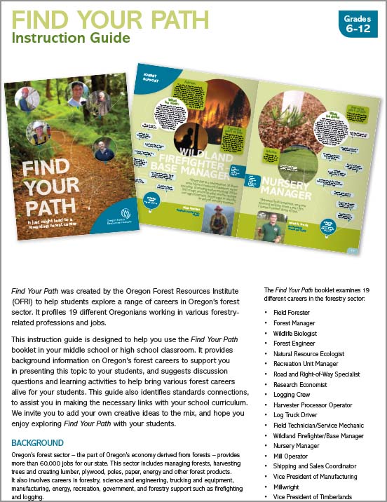 A companion to Find Your Path, the Instruction Guide includes additional activities, lesson plans and background information to help teachers go deeper into the material included in the student publication. The guide also includes a list of additional resources, and it is aligned to state educational standards.